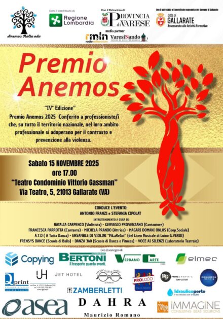 Il Premio Anemos torna anche nel 2025 per la sua quarta edizione, confermandosi come un riconoscimento nazionale dedicato a chi, con il proprio lavoro e il proprio impegno civile, contribuisce alla prevenzione e al contrasto di ogni forma di violenza.